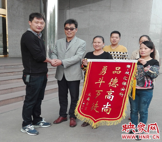 10月19日上午,雙匯路“愛尚寶貝”商店有關(guān)人員來到雙匯集團(tuán),把一面寫著“勇斗歹徒 品德高尚”的錦旗送到雙匯集團(tuán)后勤保障中心負(fù)責(zé)人手中,并向在場(chǎng)的雙匯集團(tuán)有關(guān)人員說:“要不是雙匯保衛(wèi)人員夜間值班,及時(shí)發(fā)現(xiàn)盜竊人員,我們的損失就大了?!?