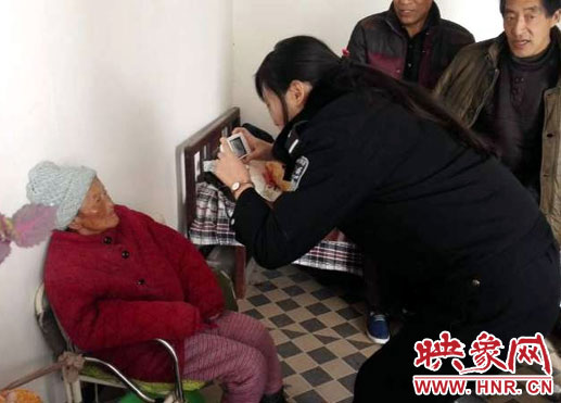 76歲的楚老太身份證和戶口簿遺失,但因體弱多病,行動不便,不能到轄區(qū)派出所補辦。澠池縣公安局仁村派出所戶籍民警孟輝冒著嚴(yán)寒,上門為老人辦證,受到楚老太家人的好評。