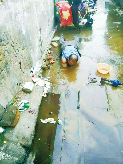 水務維修工葉京喜光著膀子趴在污水里搶修
