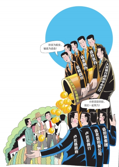 顯而易見(jiàn),扶貧風(fēng)險(xiǎn)緩釋機(jī)制不健全,是導(dǎo)致金融機(jī)構(gòu)扶貧小額信貸推進(jìn)不積極的主要原因。6部門聯(lián)合為盧氏定制的金融扶貧模式力圖改變這一狀況。