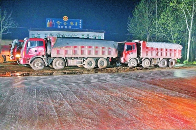 張亞麗介紹,為防止疑似超限超載車輛在深夜闖崗,交通、公安立即增派執(zhí)法人員,分組對(duì)車輛進(jìn)行布控。13日凌晨3點(diǎn)左右,突然有十余名不明身份人員對(duì)執(zhí)法人員進(jìn)行辱罵,并向執(zhí)法人員潑灑糞水,后又集結(jié)18臺(tái)疑似超限超載車輛強(qiáng)行闖崗,執(zhí)法人員立即采取果斷措施,在和孝營超限檢測站前將車輛攔停,并暫扣至卸貨場。