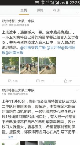 昨日上午9時(shí)39分,網(wǎng)友“鄭州特警三大隊(duì)二中隊(duì)”發(fā)布了一條微博說:“上班途中,遇到感人一幕。金水路英協(xié)路交叉口,一環(huán)衛(wèi)工阿姨將自己帶的早餐給盲人乞討者吃,并將雞蛋剝皮放入盲人口中,盲人激動(dòng)跪地感謝?!?/p>