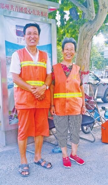 今年62歲的她,老家在周口淮陽縣曹河鄉(xiāng)任莊村。她說,她和老伴任新嶺都是環(huán)衛(wèi)工,工作地點(diǎn)都在金水路,主要負(fù)責(zé)金水路路北從英協(xié)路口到興亞建國(guó)飯店門口噴泉處的路面保潔。