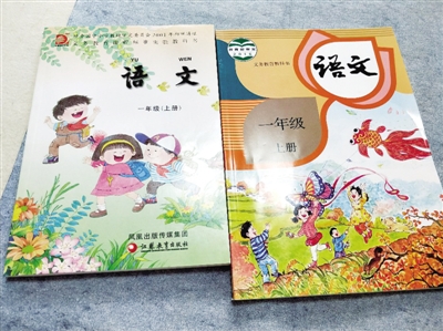 在金水區(qū)文化路二小教導主任趙健娜的辦公桌上擺放著兩本語文教材,一本是江蘇教育出版社出版的小學語文一年級上冊教材(簡稱“蘇教版”),一本是教育部審定、由人民教育出版社出版的小學語文一年級上冊教材(簡稱“部編本”)。