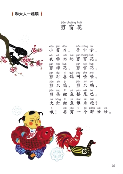 值得一提的是,“部編本”新教材增加了“和大人一起讀”欄目??傊骶帨厝迕艚淌谠f,“和大人一起讀”是新教材的亮點之一。大人指父母、老師或其他家庭成員與親友。一年級剛上學的學生自己還不會讀,所以讓大人和他們一起讀。