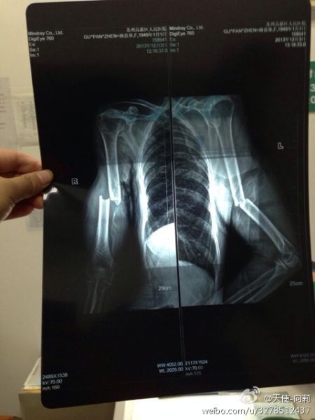 圖為微博上傳“范某某的妻子顧盤珍手被打斷?!?/font>