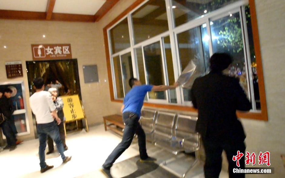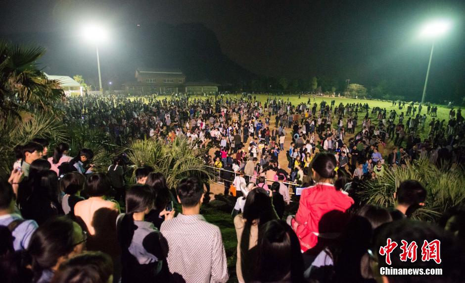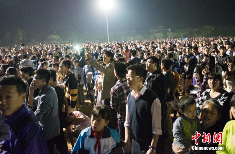 4月30日,浙江杭州蕭山湘湖金沙戲水螢飛夜主題活動(dòng),游客因螢火蟲數(shù)量稀少未達(dá)到主辦方所承諾的觀賞效果而引發(fā)雙方?jīng)_突,上演萬人齊喊退票。景區(qū)部分設(shè)施被打砸。中新社發(fā) 李晨韻 攝