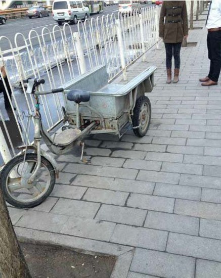 3月20日,北京,嬰兒被放在這個(gè)平板車內(nèi)。