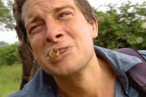 蚱蜢:切掉頭部吃掉,吃得貝爾皺起了臉(這個(gè)表情超搞笑),味兒真夠嗆,粘粘稠稠的。