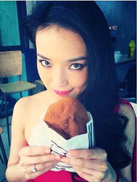 今日,舒淇在微博曬出照片,自稱“愛吃是魔鬼”;但右手無名指上的鴿子蛋非常搶眼。