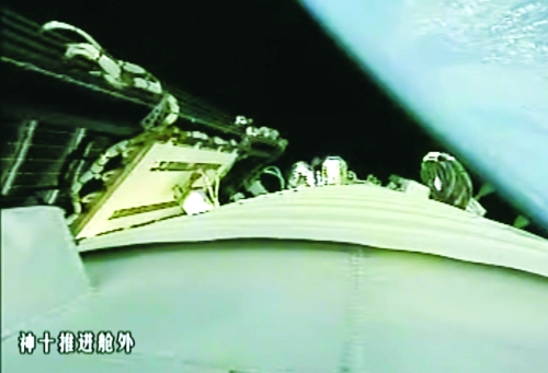 神舟十號(hào)飛船發(fā)射升空后,推進(jìn)艙外的視頻截圖。新華社發(fā)