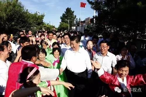 2015年7月16日,習(xí)近平在延邊州和龍市東城鎮(zhèn)光東村同當(dāng)?shù)厝罕娫谝黄?。記?鞠鵬 攝