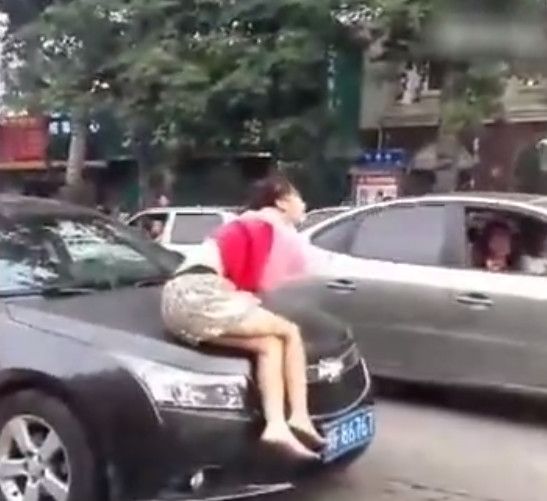 據(jù)說這名女子經(jīng)常出沒在這帶上演人車大戰(zhàn)。路上的小轎車司機(jī)看見她就十分的頭痛。因?yàn)樗龑U倚∞I車下手。其實(shí)也不傻!今天又出現(xiàn)在村里的小吃街上了,鎖定黑色雪佛蘭。二話不說就上了它!其實(shí)就她的一些小計(jì)倆,路邊的人都心知肚明了,誰叫她精神有點(diǎn)不好呢!
