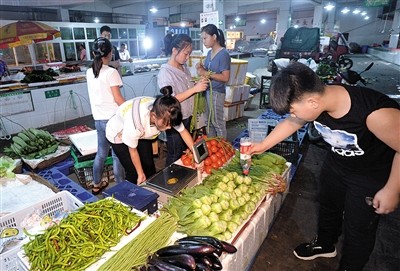 凌晨3點半,孩子們到北山市場批發(fā)蔬菜,大家忙著討價還價。