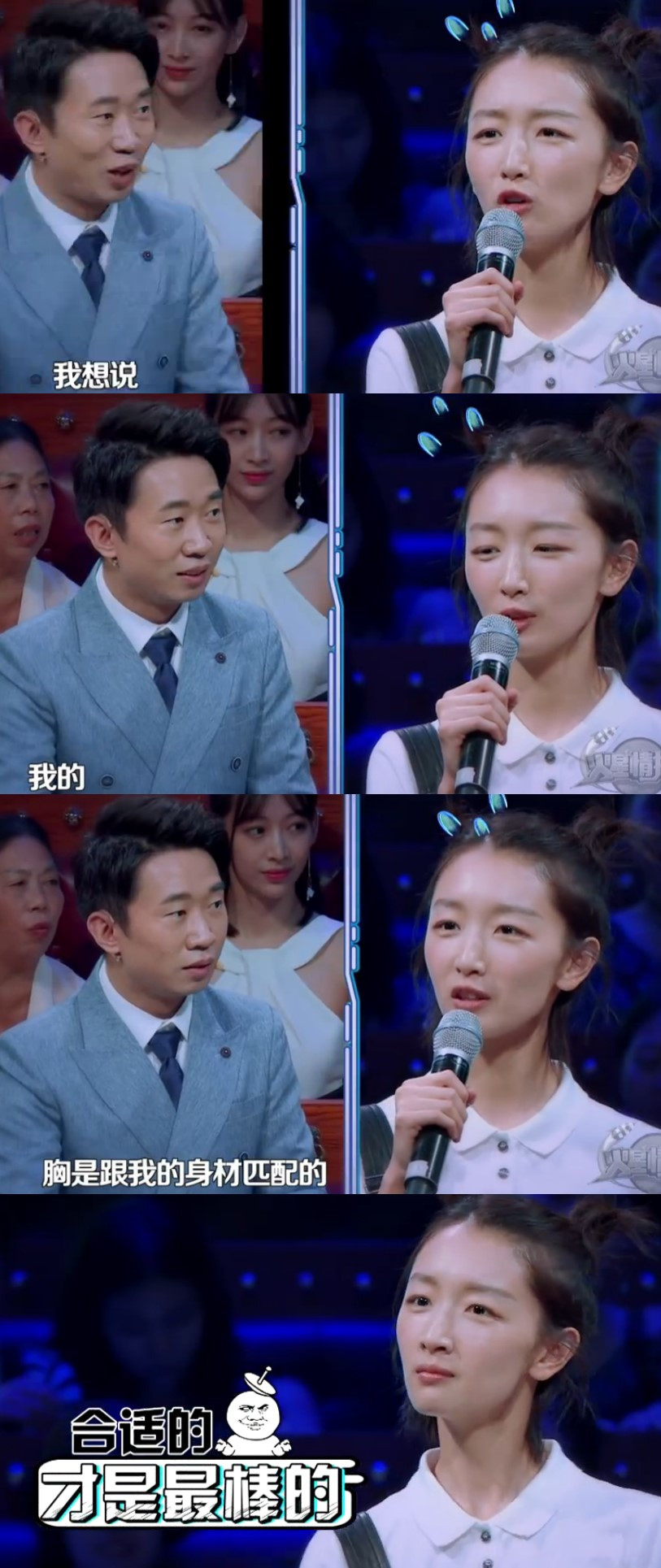 節(jié)目的某一環(huán)節(jié),為了回饋粉絲對于火星情報(bào)局的愛,作為情報(bào)局的郵遞員楊迪讀了一封粉絲寫給周冬雨的信,第一句話就直戳了周冬雨的要害:“首先作為你的粉絲,我們真的不嫌棄你的胸小,哈哈哈”,這個(gè)話題尷尬得讓人覺得楊迪就是要搞!事!情!