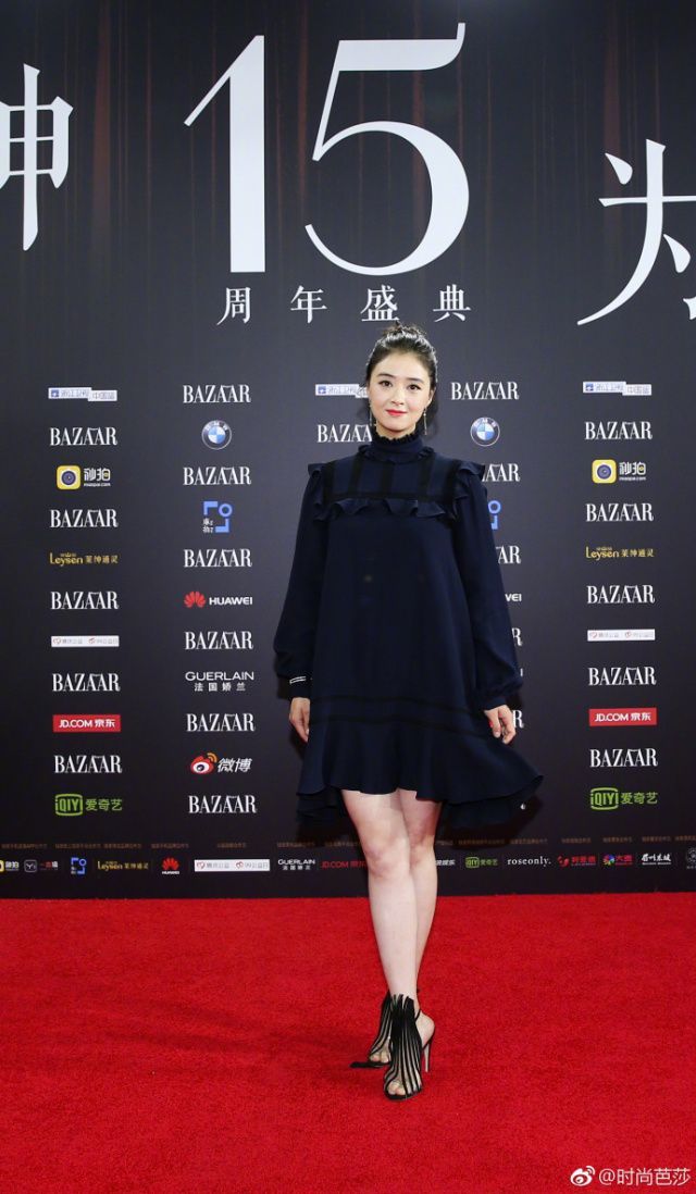剪了短卷發(fā)的趙麗穎俏皮許多,一身黑色長(zhǎng)裙莊重中帶著一絲可愛(ài)。