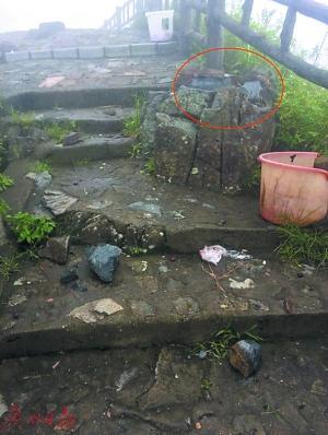 當(dāng)時(shí)被雷電擊碎的石塊。廣州日?qǐng)?bào) 圖