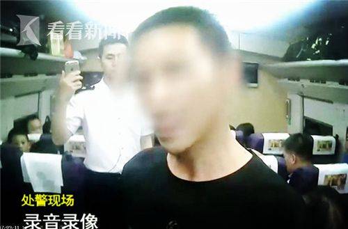 南京鐵路公安處乘警支隊(duì)民警蔣偉:“嫌疑人多次推搡我們的列車工作人員,甚至揮拳過(guò)去打我們列車長(zhǎng),列車長(zhǎng)因?yàn)榘ち舜颍榫w比較失控,一度控制不住已經(jīng)哭起來(lái)了。”