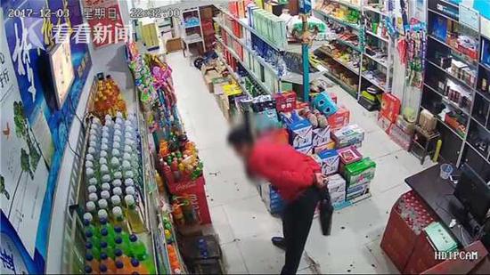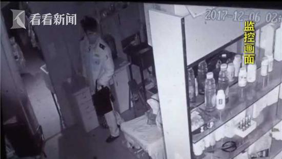 這是2017年12月6號,這家煙酒店里的監(jiān)控視頻,這名身著警服的男子在店里四處轉悠,事后店主發(fā)現錢少了。