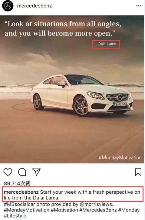 達(dá)賴那句話可翻譯為,從不同角度審視境遇,你的視野會(huì)更開闊??墒牵袊?guó)的利益容不得任何角度的挑戰(zhàn),任何勢(shì)力,拿分裂中國(guó)做文章都是可笑的,也是不能得逞的。如果繼續(xù)傷害中國(guó)人民感情,不真正反思,再大的汽車公司恐怕也難以奔馳下去。