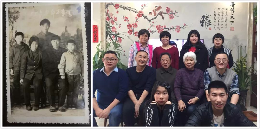 這兩張全家福照片,一張是三十多年前的春節(jié)期間的合影,一張是這個除夕我們大家庭的合影。