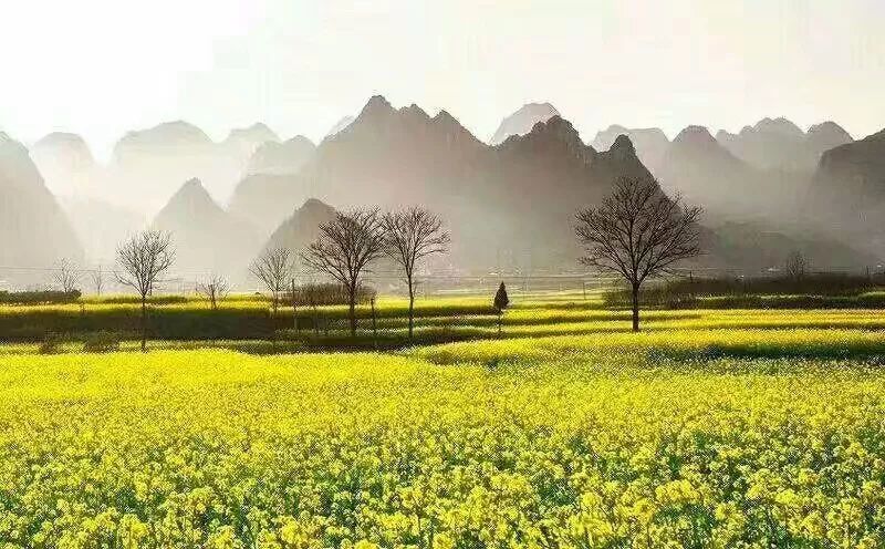 前幾天路過萬峰林時,山邊田里的油菜花也相續(xù)開放了。