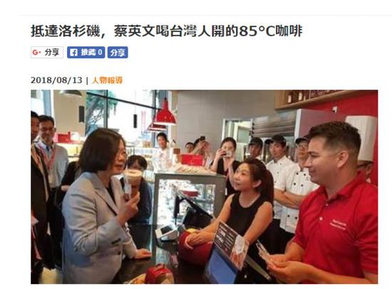 然而,令這家在大陸賺錢賺得“美滋滋”的臺(tái)灣企業(yè)意外的是,公司在美國(guó)洛杉磯的一家店鋪,卻成了在美國(guó)洛杉磯“過境”和給臺(tái)獨(dú)“造勢(shì)”的蔡英文專門“造訪”的一站。而且根據(jù)臺(tái)灣媒體的報(bào)道,這蔡英文還把“85度C”視為“臺(tái)灣之光”。