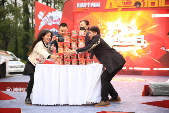 當天的演唱環(huán)節(jié),涌現(xiàn)出了高音哥、清新姐等一眾實力唱將,而在游戲環(huán)節(jié)“康師傅都是我的”中,女生們可就厲害了,使出了渾身解數(shù),一位女生以一次抱得十一桶康師傅紅燒牛肉面的記錄登頂冠軍,連男生也甘拜下風。