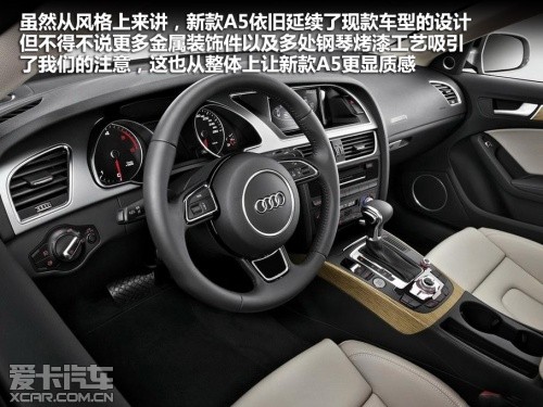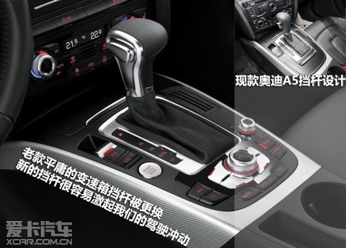 雖然新款奧迪A5的中控臺布局沒有進行新的設(shè)計,但是新車采用了全新設(shè)計的儀表盤,一體化設(shè)計的儀表與內(nèi)飾的融合更加緊密。另外老款平庸的變速箱擋桿被更換,新的擋桿很容易激起我們的駕駛沖動,另外新車在MMI操作面板的很多細(xì)節(jié)上也有變化。