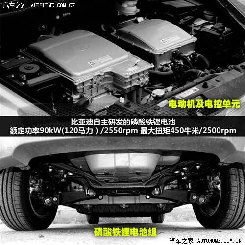 這輛比亞迪e6純電動(dòng)車有一套由比亞迪自主研發(fā)的磷酸鐵鋰電池,額定功率90kW(120馬力)/2550rpm,最大扭矩450牛米/2500rpm。巨大的電池組就被設(shè)計(jì)在車身底部中段的位置,電池組外面帶有鋼制保護(hù)殼體,避免電池組直接受到撞擊和剮蹭。由于巨大的電池組,比亞迪e6車身質(zhì)量達(dá)到了2.3噸,論重量和大眾途銳和寶馬X6達(dá)到了一個(gè)數(shù)量級(jí)。