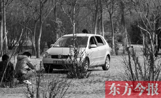 記者還發(fā)現(xiàn),有的游人將汽車開進(jìn)草坪后,在草坪上鋪張報紙,席地而坐,有的三五成群聚在一起,打起撲克。