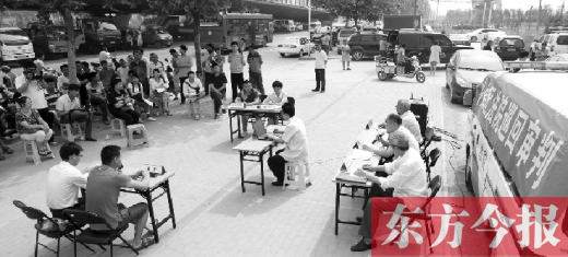 5月22日上午,鄭州市西四環(huán)須水立交橋旁,鄭州市中原區(qū)人民法院將法庭搬到這里,公開開庭審理了一起貨車肇事案,十幾名貨車司機(jī)坐在樹蔭下旁聽。