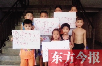 昨晚,已經(jīng)返回當(dāng)?shù)氐内w會(huì)勇傳來(lái)圖片,畫(huà)面上,幾個(gè)孩子舉起寫(xiě)著“感謝東方今報(bào)的叔叔阿姨”的紙片。字寫(xiě)得歪歪扭扭,但,看到的人都覺(jué)得很溫暖。DF