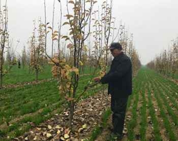 (曹紅彥帶領(lǐng)貧困戶種植的百畝果園)