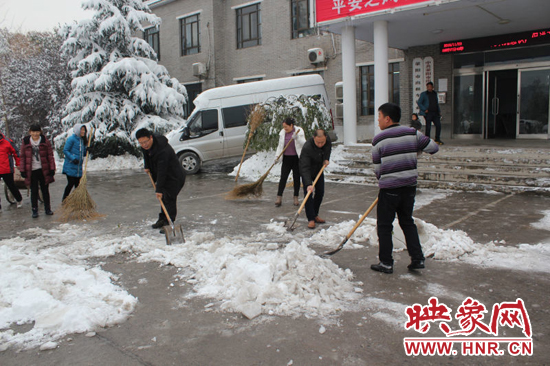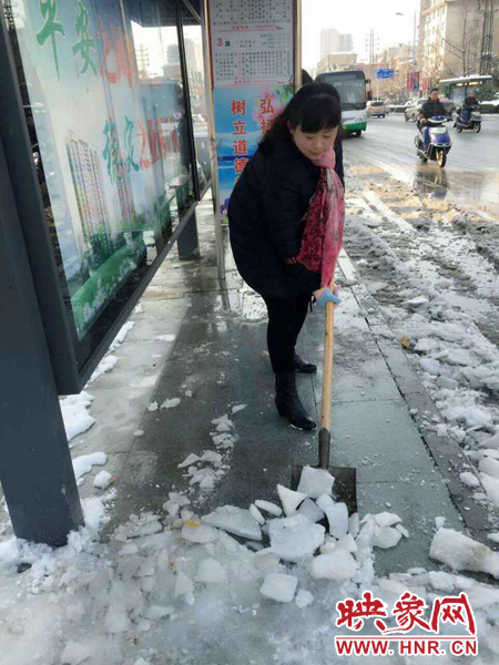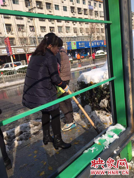 滎陽(yáng):百余公交人 街頭除冰雪