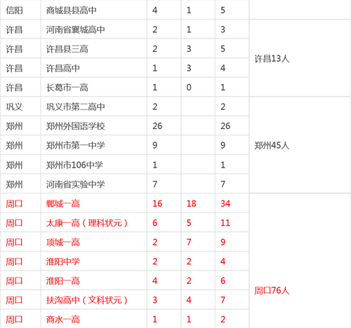 河南各市縣2015高考清華、北大錄取明細(xì)