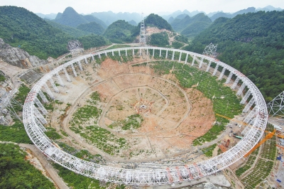 500米口徑球面射電天文望遠鏡雛形初具圖片來自新華社