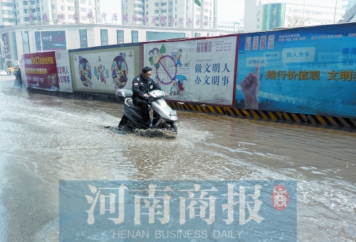3月26日,鄭州晴空萬里,然而紫荊山路上卻多出一條百米長“河”。當天上午12時,紫荊山路與東大街交叉口,北向南方向的綠燈亮后,行人穿過東大街,卻被路南的一條“河”攔住去路。