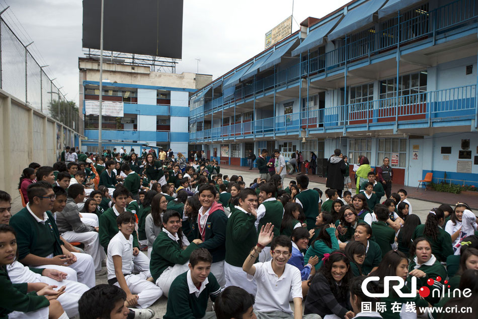 當(dāng)?shù)貢r(shí)間2014年5月8日,墨西哥墨西哥城,學(xué)生聚集在庭院內(nèi)。 圖片來(lái)源:Rebecca Blackwell/東方IC