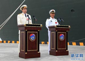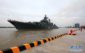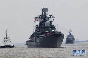 當(dāng)日,參加中俄“海上聯(lián)合—2014”軍事演習(xí)的俄方艦艇陸續(xù)駛抵上海某軍港。中俄兩國(guó)海軍互鳴禮炮,中方為來訪的俄艦舉行隆重歡迎儀式。俄羅斯太平洋艦隊(duì)旗艦“瓦良格”號(hào)導(dǎo)彈巡洋艦駛?cè)胲姼蹠r(shí),參加歡迎儀式的軍樂隊(duì)奏響歡迎曲。隨后,“快速”號(hào)驅(qū)逐艦、“潘捷列耶夫海軍上將”號(hào)大型反潛艦、“伊利姆”號(hào)中型海洋油船、“涅維爾斯科伊海軍上將”號(hào)大型登陸艦,“卡拉爾”號(hào)海洋拖船陸續(xù)駛?cè)敫劭?。這次聯(lián)合軍事演習(xí),中俄海軍都派出了主戰(zhàn)艦艇參加。中方參演兵力包括導(dǎo)彈驅(qū)逐艦、導(dǎo)彈護(hù)衛(wèi)艦、綜合補(bǔ)給艦以及導(dǎo)彈艇等水面艦艇8艘、潛艇2艘、固定翼飛機(jī)9架。俄方參演兵力包括巡洋艦、反潛艦、驅(qū)逐艦、登陸艦、油船和海洋拖船等水面艦艇6艘。此外,為執(zhí)行海上聯(lián)合解救被劫持船只、護(hù)航等特殊任務(wù),雙方還派出艦載直升機(jī)、特戰(zhàn)分隊(duì)等兵力參加此次演習(xí)。新華社記者 查春明攝