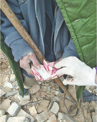 1月5日,鄭州賣蘿卜的老趙傷了心,老母親患了腸癌,大冷天他從開封拉了車蘿卜來賣,三天掙了兩百。沒想到遇到一男一女,倆人說需要換整錢,熱心的老趙拿出200給了他們,倆人又說不換了,把錢還給老趙。老趙最后發(fā)現(xiàn)兩張錢編號(hào)一樣,是假錢!