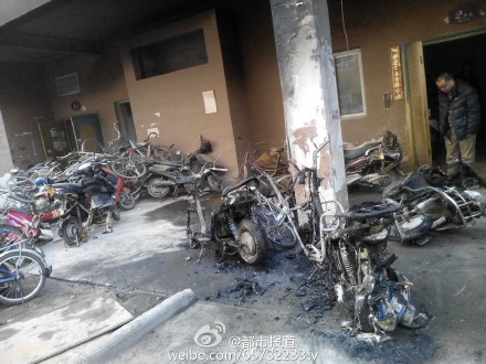 又是火災(zāi)!又是小電電!又是飛線充電!今天早晨6點(diǎn)多,鄭州豐慶路與博頌路口的富邦銘邸小區(qū),十幾輛電動車著火受損,4輛被燒得面目全非。業(yè)主說,著火的這個(gè)拐角,昨晚有多輛電動車同時(shí)飛線充電,能不著火嗎!物業(yè)呀,趕緊建充電車棚吧!