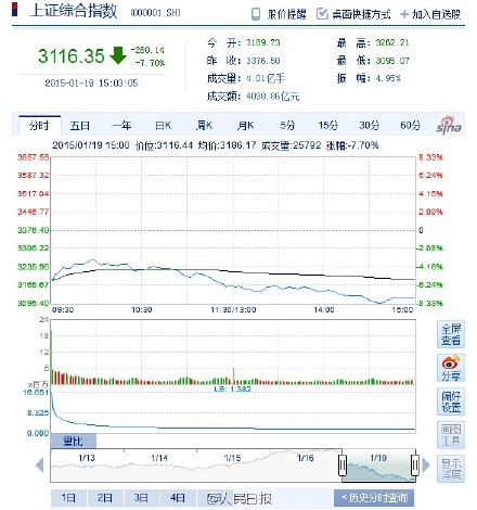 2、快訊:滬指暴跌7.7%近300點(diǎn) 創(chuàng)7年最大跌幅