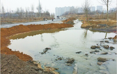 市民王先生反映,南水北調(diào)大橋南邊的祈福大道上,到處都是積水?,F(xiàn)在水深一米多,長(zhǎng)度有近百米,連公交車都不能通過。“昨天下雨,積水更深,啥車都過不去。我們?cè)谶@里幫助推滅火的車,不知推了多少輛?!?/font>