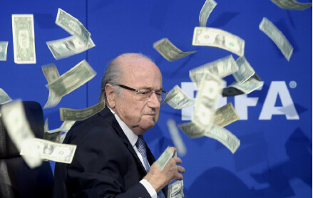 國(guó)際足聯(lián)召開(kāi)新聞發(fā)布會(huì),宣布新主席選舉將在2016年2月26日舉辦,不過(guò)發(fā)布會(huì)發(fā)生一個(gè)插曲,喜劇演員李-尼爾森突然闖入,他向布拉特不斷揮舞鈔票,并且諷刺道,”韓國(guó)拿下2026年世界杯的錢夠了吧!“隨后他把錢全都扔在了布拉特的臉上,后者一臉驚慌。