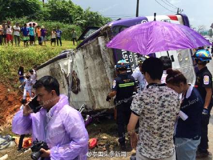 2015年7月26日中午,普吉府BY PASS路發(fā)生旅游大巴翻車事故。駐普吉領(lǐng)事辦公室在接到游客求助電話后第一時間趕赴事發(fā)現(xiàn)場,經(jīng)向警方了解,車上17名中國游客受傷,目前無死亡報告。17人中有1人重傷,目前傷者已全部送醫(yī)院救治。駐普吉領(lǐng)辦正前往醫(yī)院探望傷者,事故原因警方正在調(diào)查中。