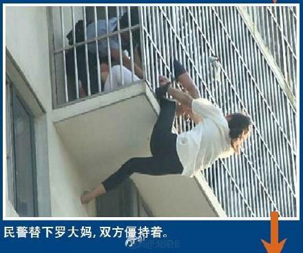 10、女子欲跳樓 大媽抱住不松手