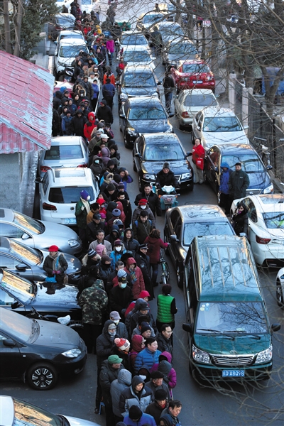 昨日早8時(shí)許,數(shù)百人等候在朝陽區(qū)水碓子郵局門口,平日寂靜的街道“人氣”旺盛。一位推著自行車經(jīng)過的女士好奇地詢問,“今天怎么了?這么多人!”