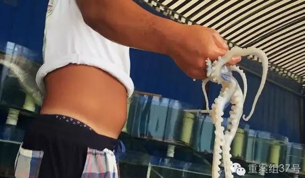 有攬客者將重案組37號(微信ID:zhonganzu37)探員領(lǐng)入一處大排檔就餐,該大排檔的章魚價格為185元每斤,遠遠高于市場價。