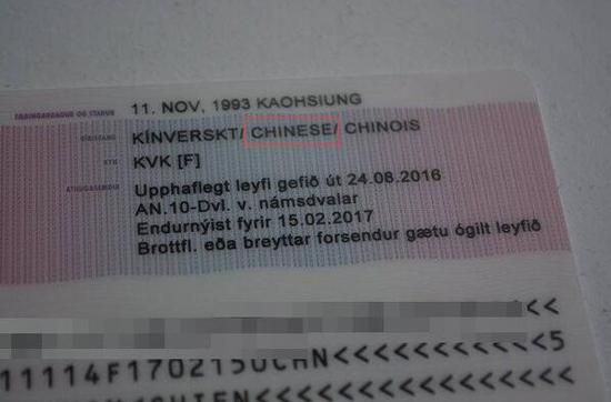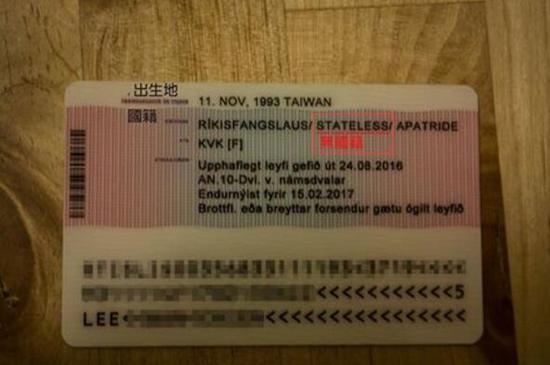 原標(biāo)題:臺(tái)灣女生不滿冰島居留證被列中國(guó)籍 結(jié)果被改為“無國(guó)籍”